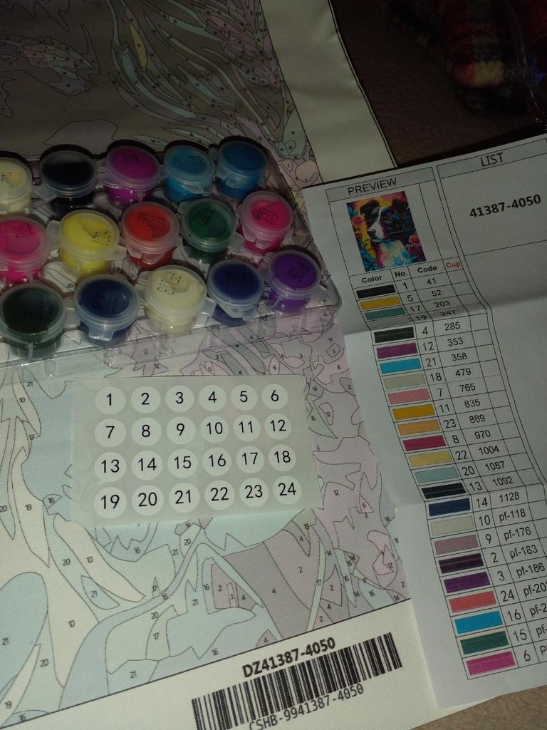 Отличная картина по номерам с дополнительной самодельной рамкой. Первое, что хочется отметить — это размер, а именно длина - 55см (всё полотно) и ширина - 46 см. Картина большая, а потому рисунок будет четким и внушительно смотреться. Само качество полотна отличное, легко гнется, изначально было свёрнуто в трубочку и поддерживалось поролоном. Второе — это краски. Красок много (24 штуки), пришли запакованные в отдельный пакет и в блистере. Дополнительно к ним идёт инструкция какой цвет обозначает определенную цифру и дополняется это всё специальными наклейками, которые можно самостоятельно налепить на краски (как я и сделала). Сами краски являются гуашью. Накладываются и распределяются хорошо. Баночки заполненные полностью. В дополнение к краскам идут три кисточки — толстая и две тонких. Рекомендую данную вещь даже по полной цене, так как считаю, что цена = качество.