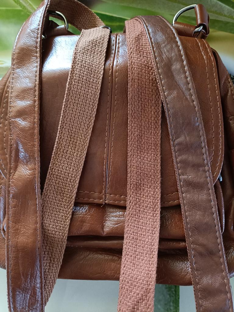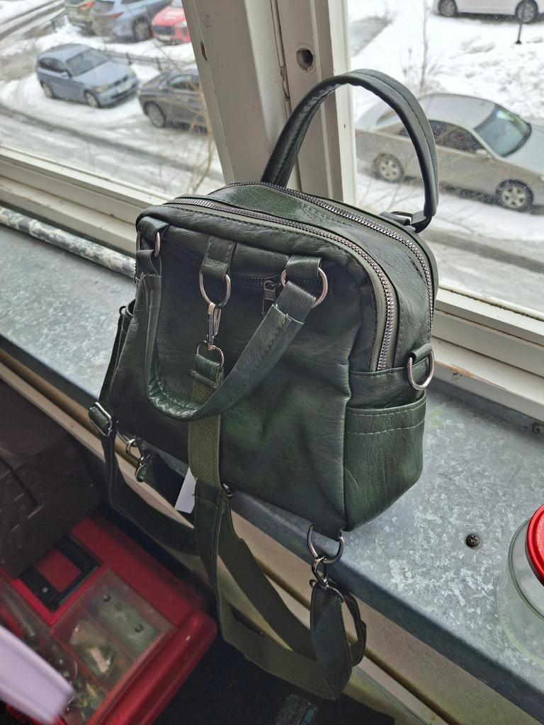 Сумочка хорошая, экокожа мягкая с блеском без запаха, швы аккуратные; длинные ручки на тканевой основе -простоваты, но в общем не выделяются; ношу как сумку через плечо, т.к. для рюкзака маловат размер, не в моём вкусе; четвёрку ставлю за цвет, ждала зелёный, получила чёрный, но чёрный хороший, глянцевый, оставила.
