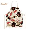 Нагрудник для приготовления пищи, дышащий пятновыводитель, лен, нежный декоративный длинный нагрудник с рисунком кошек из мультфильма, длинный нагрудник для приготовления пищи для барбекю