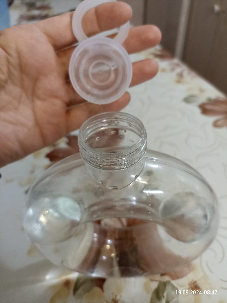 Бутыль прикольная, но пробка толком не закрывает. Из бутылки вытекает жидкость. Попробовала закрыть пробкой из-под молока, и то лучше получилось. Закрыла герметично. Хорошо что подошла к бутылке.