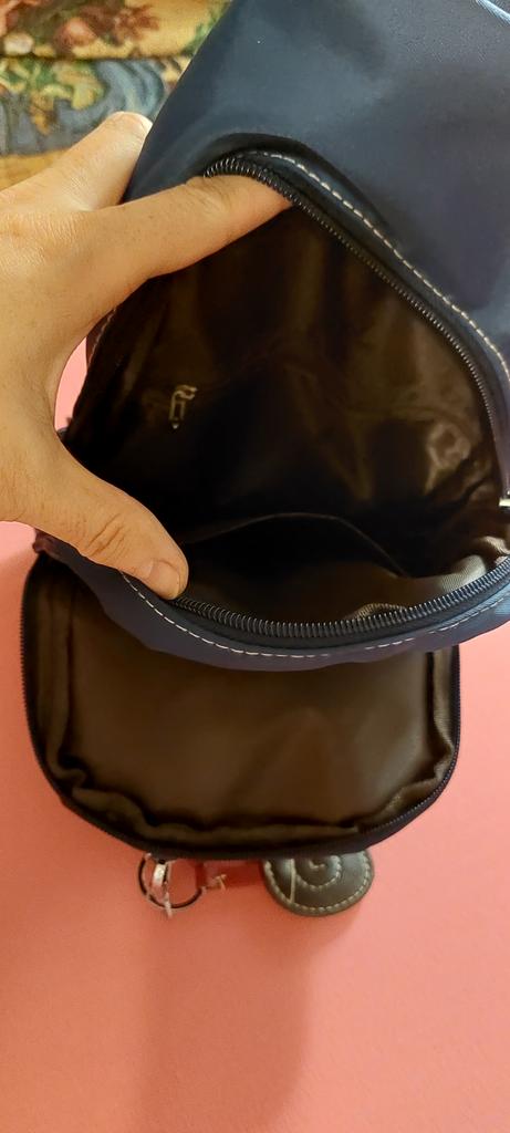 Сумочка хорошая. Материал похож на непромокаемую плащевку. Сфотографировано со всех сторон.