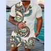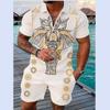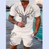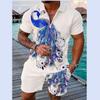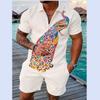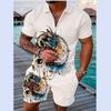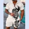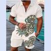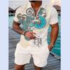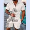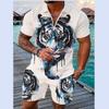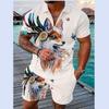 Летний тренд, мужской спортивный костюм, свободный комплект с животным 3D принтом, повседневная рубашка поло на молнии и шорты, комплект из 2 предметов, комплект мужской одежды, спортивный костюм