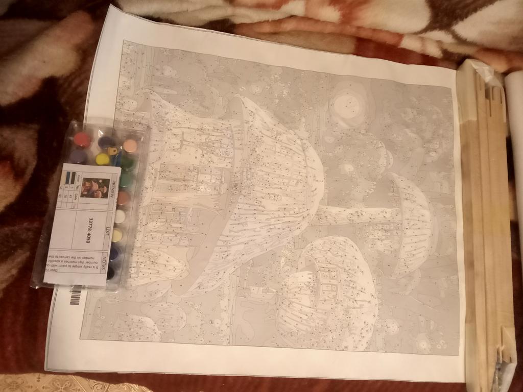 Прекрасная картина! Очень довольна заказом. Краски свежие, плотные, соответствуют номерам и с большим запасом! Холст был несколько замят, но легко разглаживается утюгом. Для удобства работы холст лучше сразу поместить на подрамник. В общем - рекомендую!!!