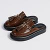 Женские сабо с круглым носком на плоской подошве, на платформе с кисточками и металлическими украшениями, женская модная повседневная обувь, летняя черная, темно-коричневая 43