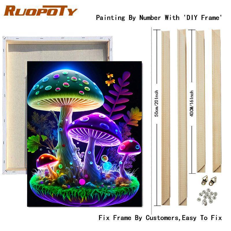 RUOPOTY Наборы для рисования по номерам «сделай сам» для взрослых, грибной пейзаж, современная картина с цифрами для украшения дома