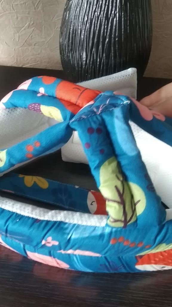 Выиграла защитную шапочку за 1 рубль,прошито очень аккуратно и к голове ребенка поверхность мягкая , сделана из поролона и х/б сетки.