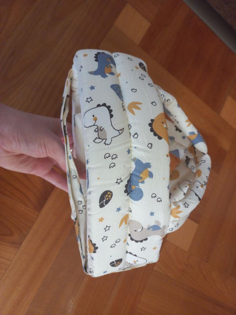 Забавная шапка-шлем) Качественно сделана. Швы ровные, красивые. Есть две липучки, держат хорошо. Красивый принт. Был запах (для кого-то может показаться неприятным), быстро выветрился. На карточке написано от 0 до 8 лет подходит. Спасибо продавцу! 🙂👍👍