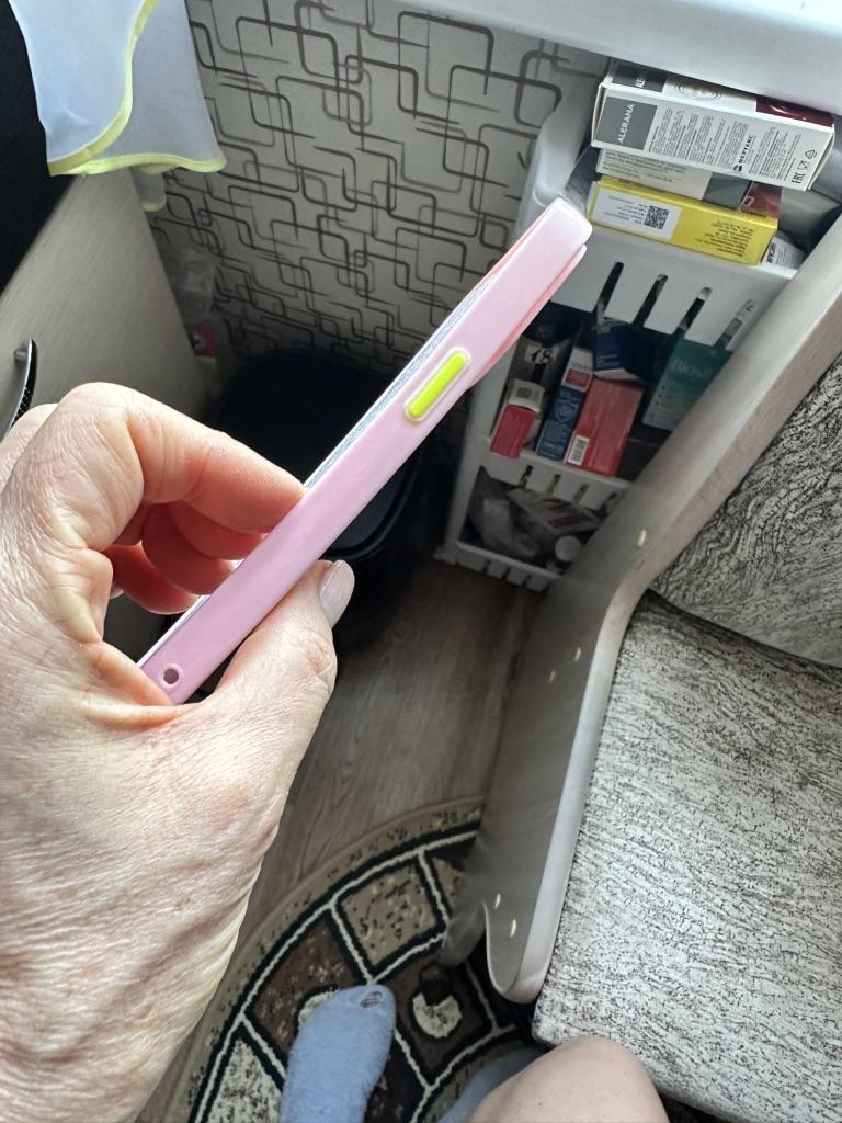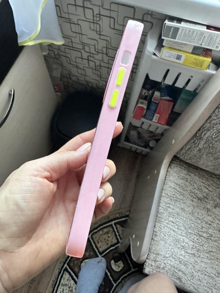 Очень красивый чехол! Сделано качественно, думала, что блёстки будут плавать, но они просто залиты. Кнопки включения и громкости жёлтого яркого цвета