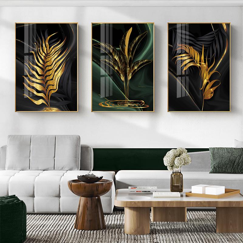 Абстрактное растение плакат золотой зеленый черный лист Современная картина на холсте настенная живопись печать картина скандинавская гостиная украшение дома