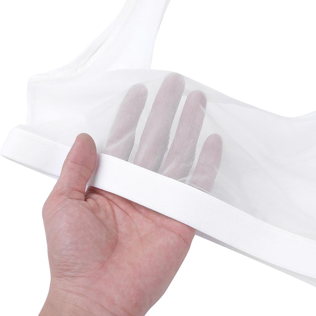 Женская мода без рукавов, прозрачная сетка, глубокий U-образный вырез, бюстгальтер, жилет, укороченные топы на бретелях
