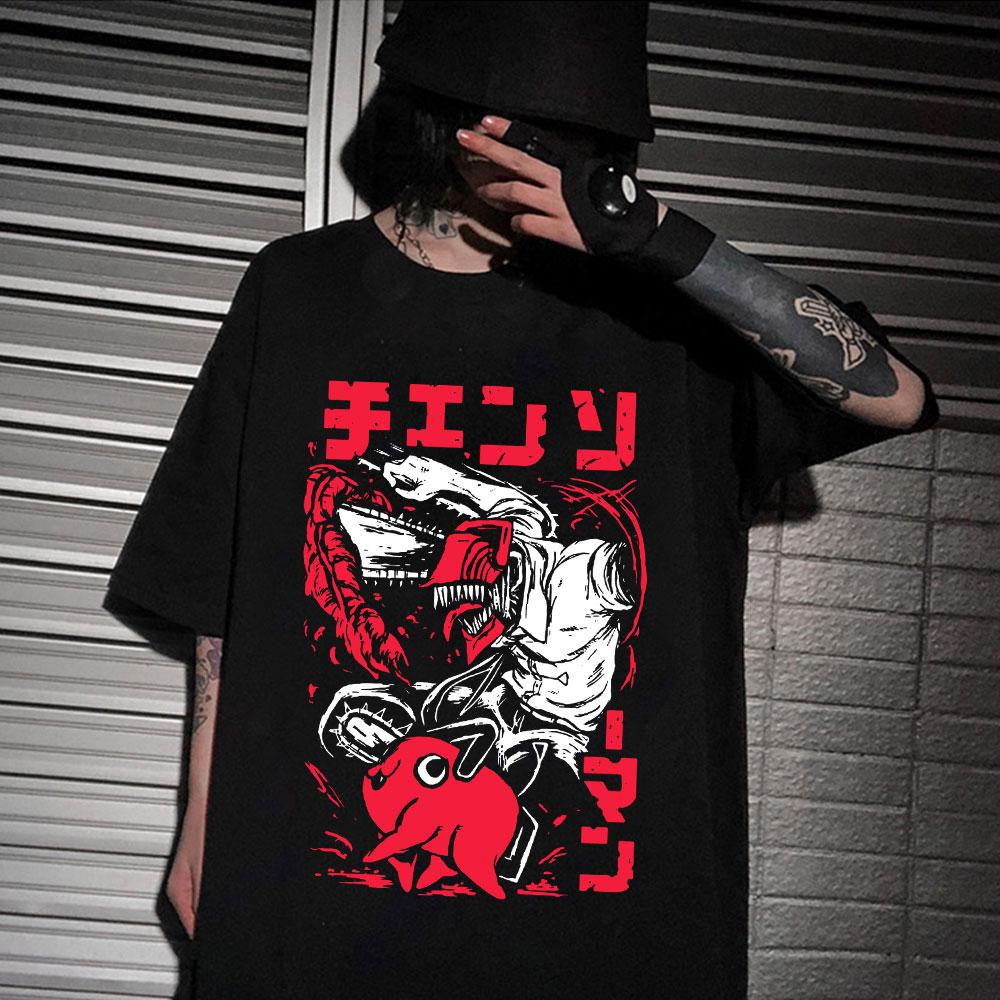Летняя футболка японского аниме «Человек бензопилы Денджи», футболки с графическим принтом манги, забавные футболки унисекс с короткими рукавами Pochita Makima
