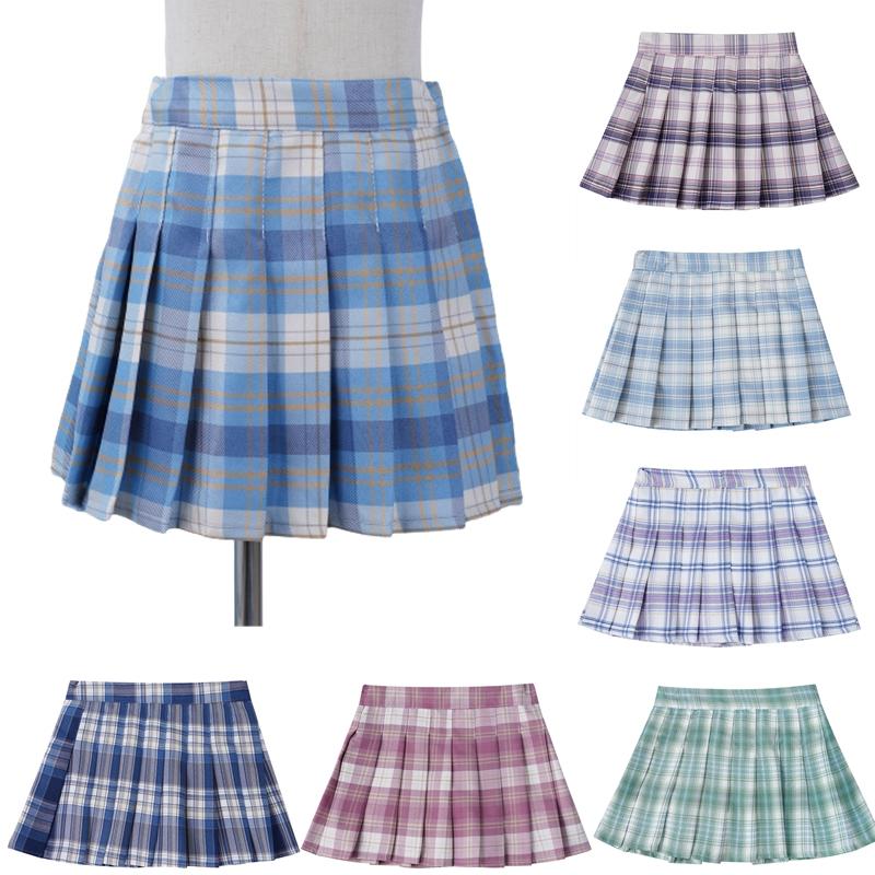 Юбка для девочек, эластичный пояс, сетчатая Студенческая плиссированная юбка, детская школьная одежда, повседневная одежда