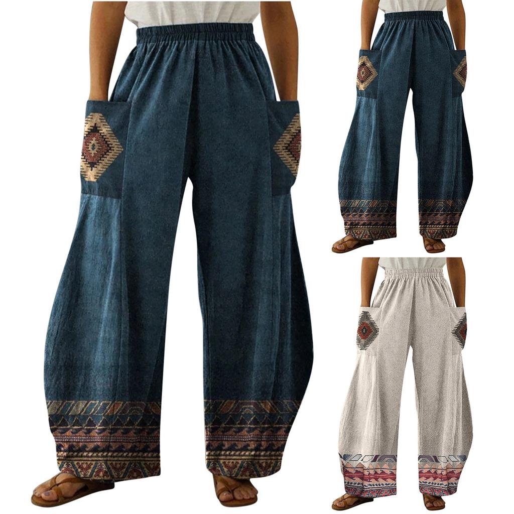 Женские свободные повседневные широкие брюки из хлопка и льна с принтом — купить товар онлайн с бесплатной доставкой до всему миру!