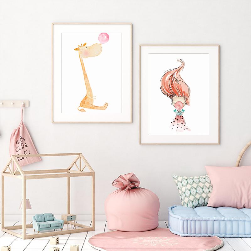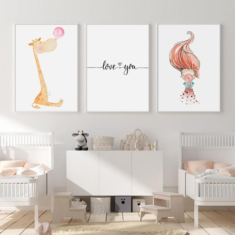 Розовый воздушный шар для девочек, постер с жирафом, животный принт, детская настенная живопись на холсте, детские цитаты, картина в скандинавском стиле, декор для детской комнаты