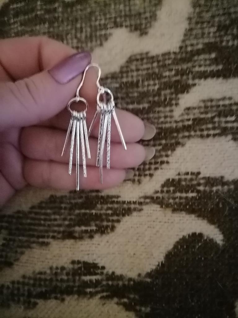 💕Красивые нежные изящные Серёжки висюльки 😍 Недостаток: Без заглушек, Дужка была сильно погнута И искривлена. Выпрямила☝️ Купила комплект с подвеской ❣️ Переливается замечательно. Фото не передаёт такую красоту☝️🌼 Продавец прислал благодарность за покупку🤗 Пишет что из стерлингового серебра 🤔 Надо лучше упаковывать 🥺