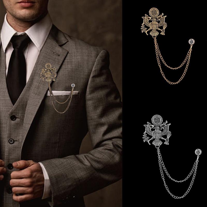 Брошь в форме орла, ретро-панк, мужская мода, изысканный костюм с животным узором, рубашка, джинсовый воротник, цепочка с кисточками, броши, ювелирные аксессуары, подарки