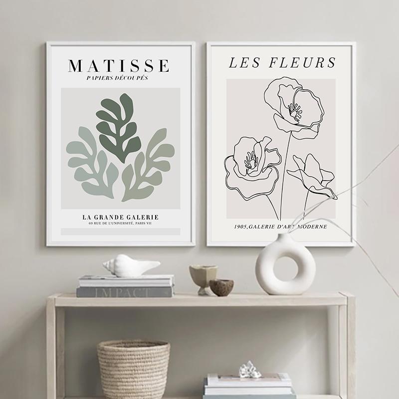 Матисс цветы листья линия стены искусства абстрактная картина на холсте плакаты на скандинавскую тему и принты настенные панно для гостиной домашний декор