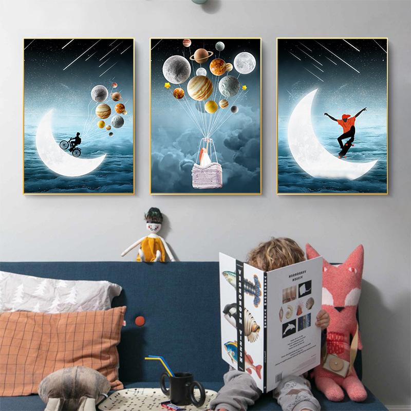Современный мультяшный космический астронавт, планета, детский постер, луна, детский сад, спальня, украшение для дома, живопись, холст, настенная художественная картина — купить товар онлайн с бесплатной доставкой по всему миру!