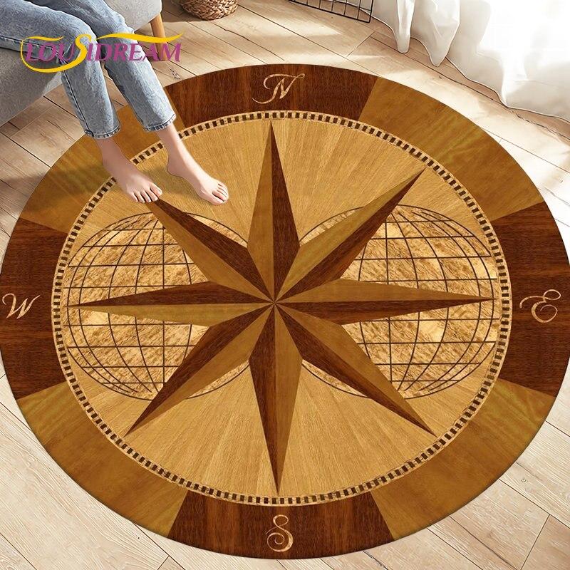 Круглый коврик с компасом, коврик в стиле ретро Британского флота «Новый мир», ковры для гостиной, спальни, нескользящие коврики для детских игр