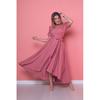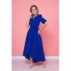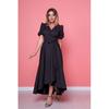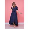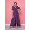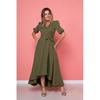 Женское расклешенное платье асимметричного кроя с поясом и двубортным воротником длины миди