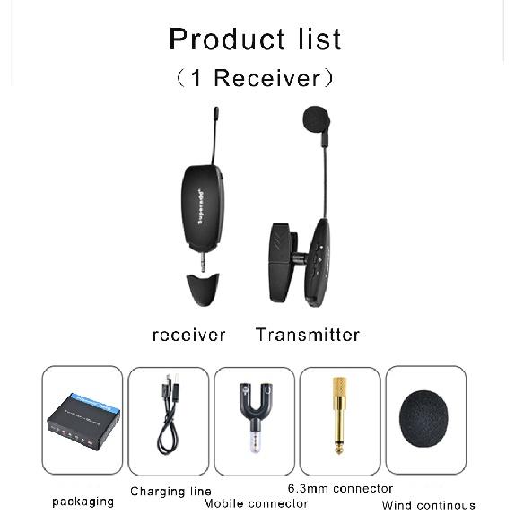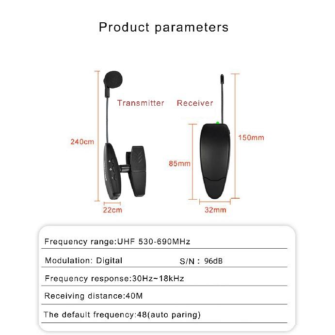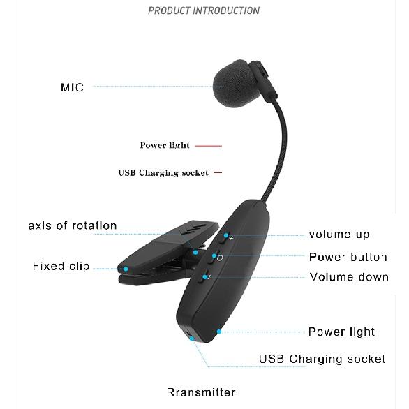 Беспроводной передающий микрофон UHF, подходящий для всех видов духовых инструментов, таких как труба, большой, валторна, тромбон, кларнет, саксофон и барабан.