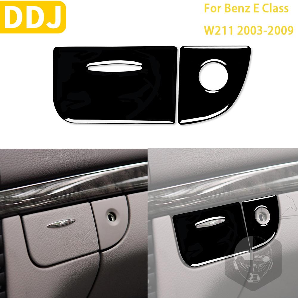 Аксессуары для Benz E Class W211 2003-2009, аксессуары для автомобиля, черный внутренний ящик для хранения, замок для ключа, накладка, пластиковая наклейка