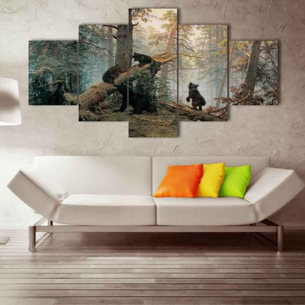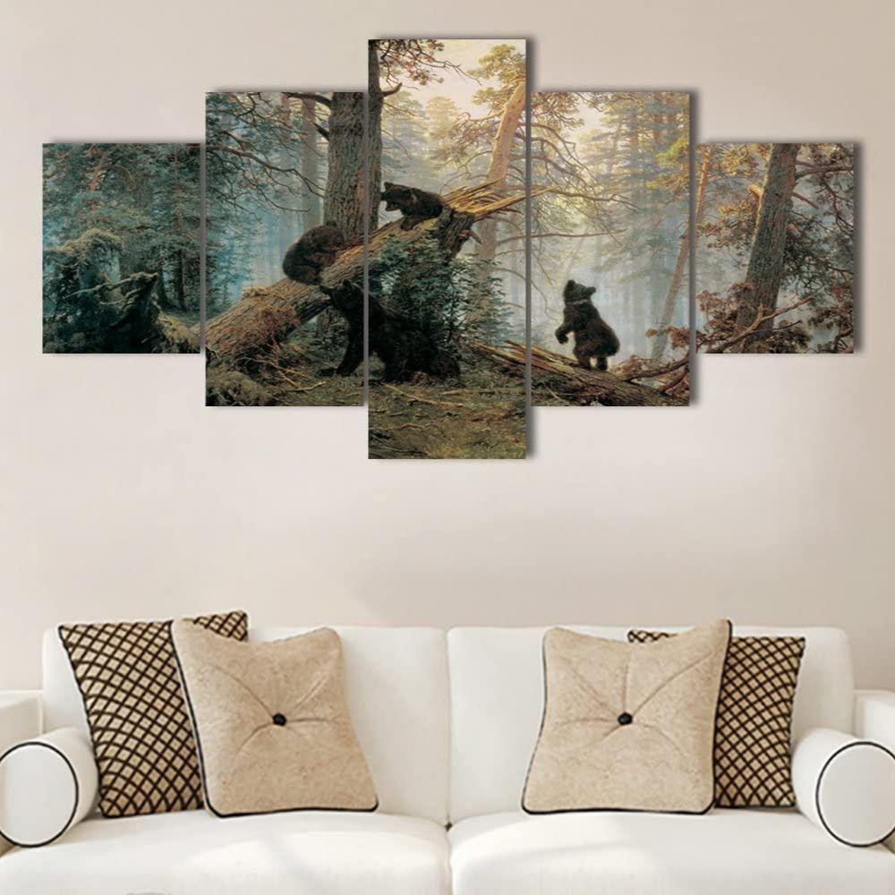 Без рамы, 5 панелей, черные медведи, играющие на упавших сломанных деревьях, холст, постеры, настенные художественные картины для гостиной, домашний декор