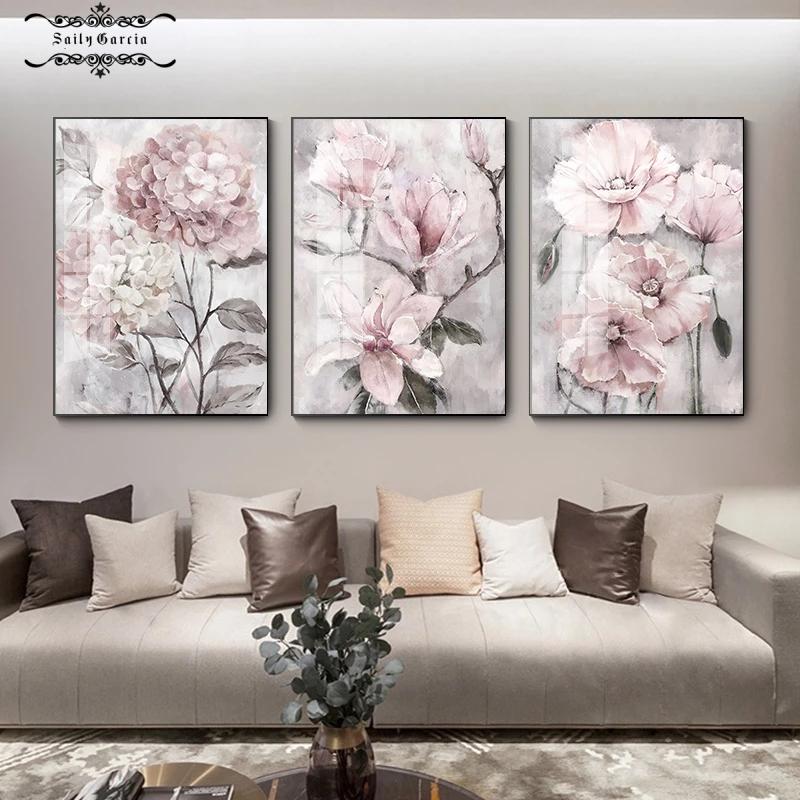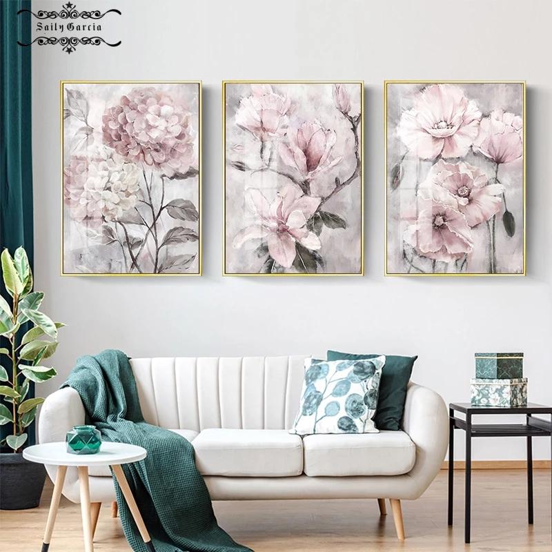 Цветочная настенная живопись на холсте розовые цветочные постеры с принтом для скандинавской ванной комнаты, гостиной, домашнего декора стен, фотографии, фермерский дом