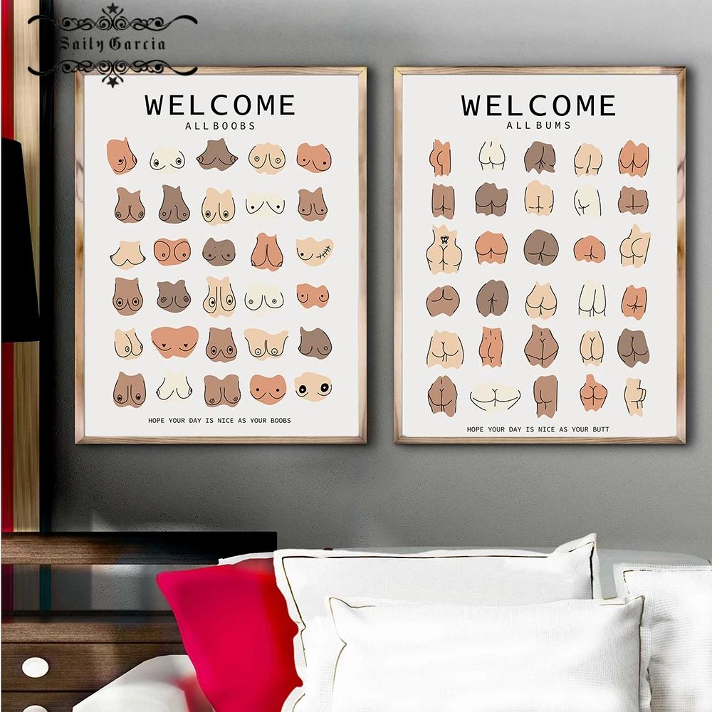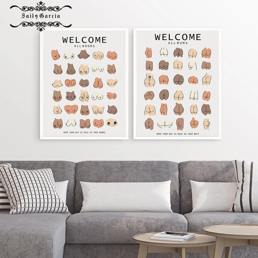 Забавная ванная комната, все расы кожи, тело, попка, грудь, настенный художественный холст, постер и принты, линейные изображения для гостиной, интерьерные картины