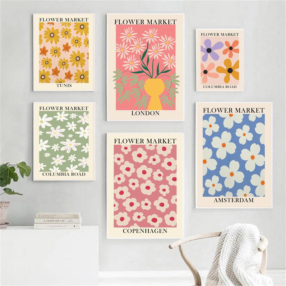 Абстрактное цветочное рыночное винтажное минималистское настенное искусство, плакаты на скандинавскую тему, живопись на холсте и принты, настенные панно для декора гостиной