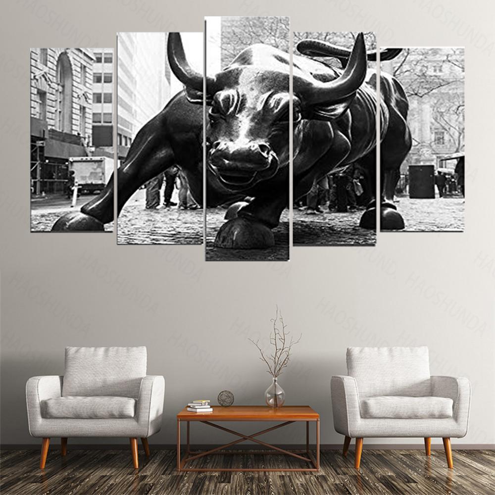 Нью-Йоркская достопримечательность, зарядка, Уолл-стрит, бык, 5 шт., холст, картина, масляный принт, плакат, настенная картина для гостиной, дома