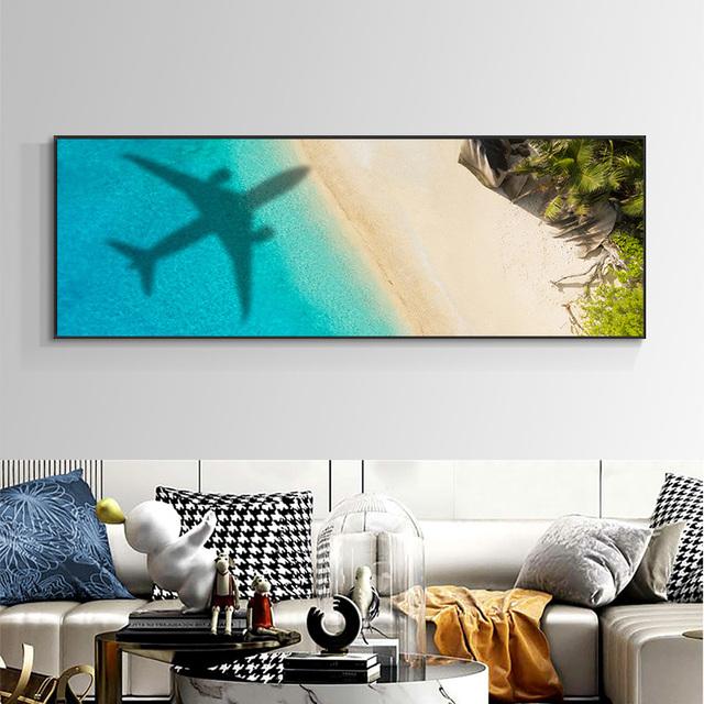 Пейзаж Самолет Тень Тропический Пляж Океан Лес Холст Картины Плакаты и принты Настенные Художественные Фотографии Домашний Декор Без Рамки
