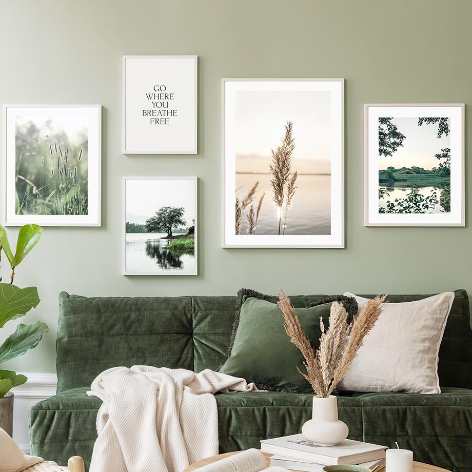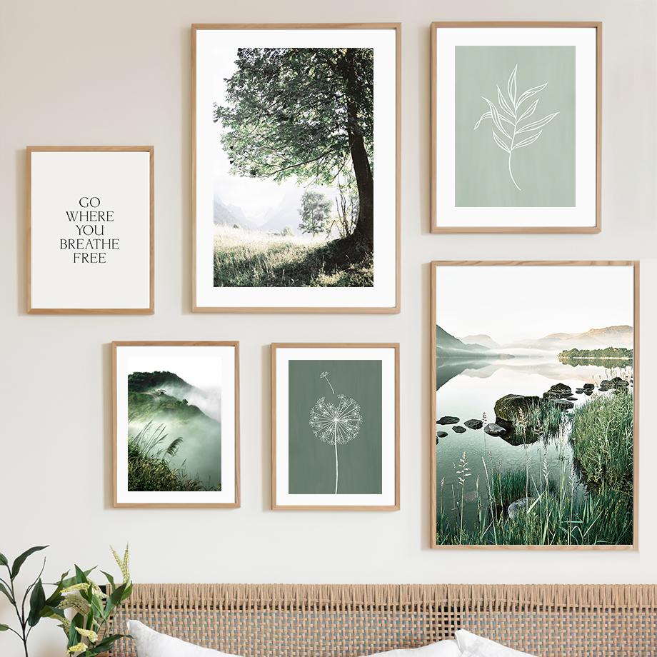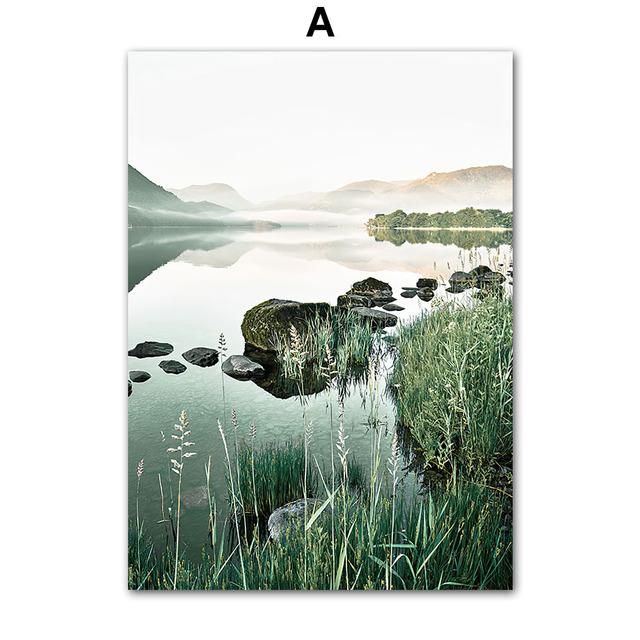Зеленое дерево, холм, озеро, одуванчик, Рид, скандинавские постеры и принты, настенная живопись на холсте, картины для гостиной, домашний декор
