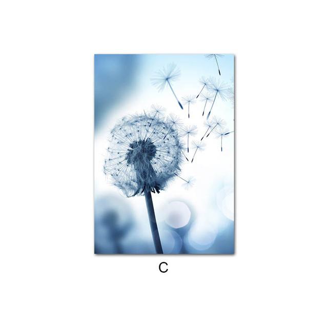 Синие растения и цветы, картина одуванчик, настенная живопись на холсте, сочные растения, настенные панно для декора гостиной, плакаты