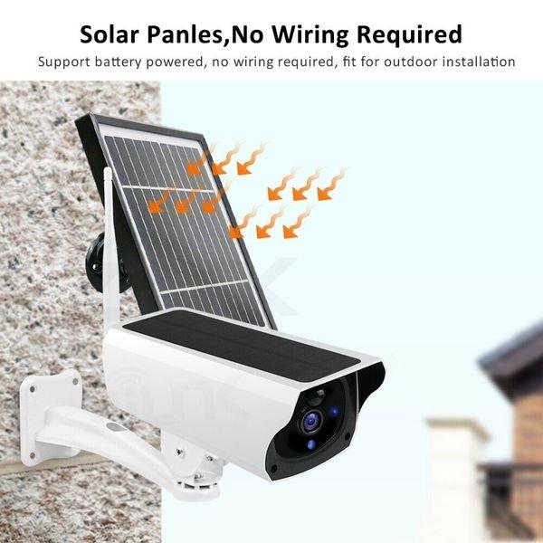 Эта наружная камера наблюдения с солнечной панелью водонепроницаема. . Оснащен инфракрасным зрением, детектором движения, двусторонней аудиосистемой.. Он обеспечивает видео Full HD 1080P.* Формат видео : AVI