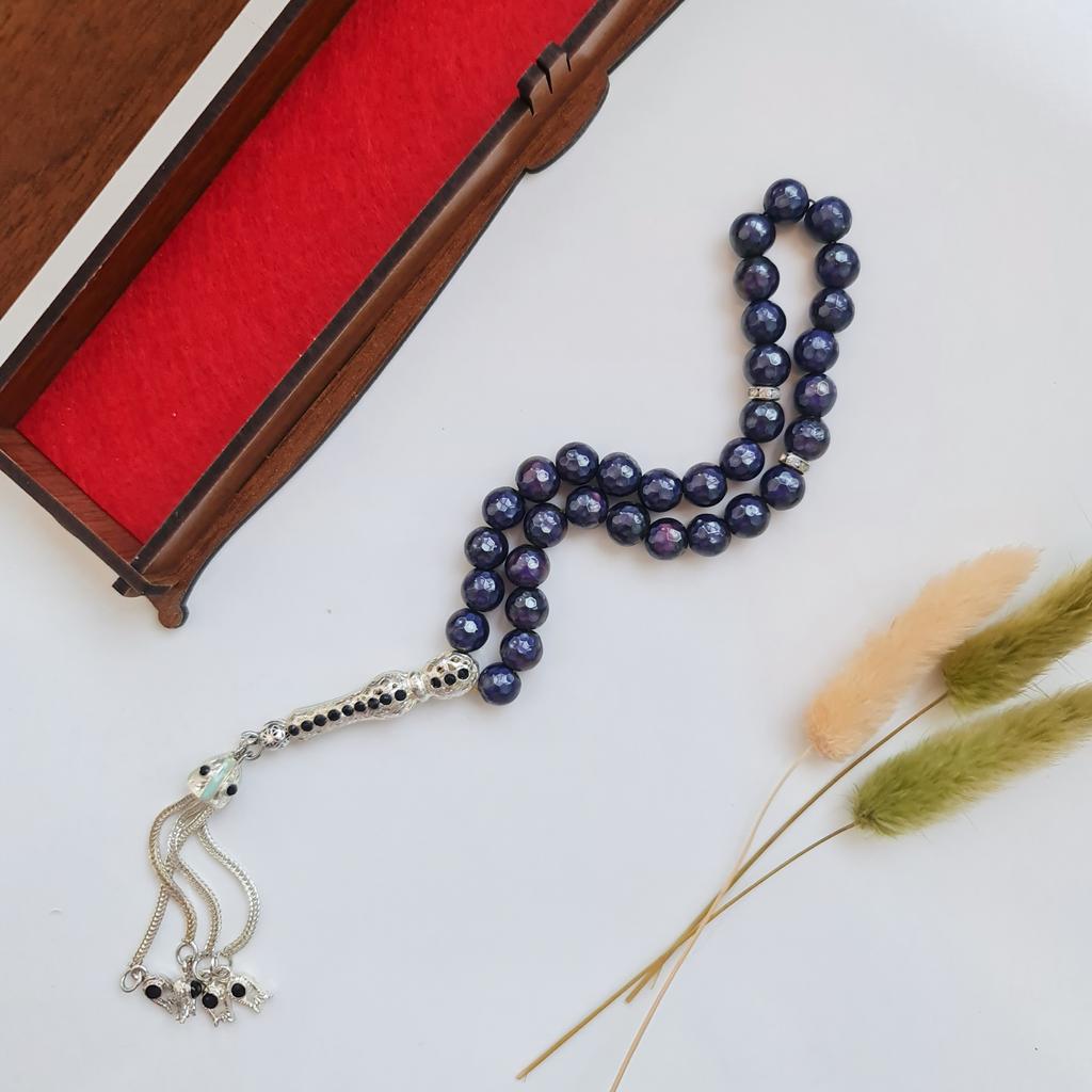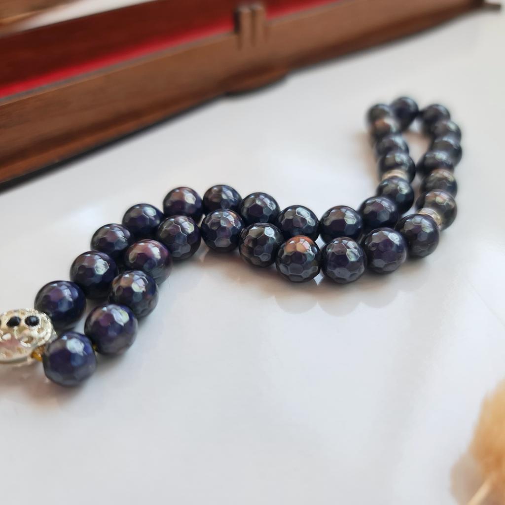 Четки из натурального камня, меняющие цвет. Чудесная вещь. Идеальный подарок правоверному мусульманину. Я купила в подарок мужу, он также в восторге. И если у меня были какие-то сомнения, они тут же растаяли, как только я получила посылку. Чётки тяжеленькие, безумно приятные на ощупь. Бусины округлые, граненые. Поначалу они показались мне чёрными. Но стоило немного подержать четки в руках, как камни начали менять цвет. Сначала на зелёный, потом стали неистово фиолетовыми. В описании к товару не сказано что здесь за камень. Он назван просто эмоциональным... Меняет цвет от температуры тела. Каждый цвет имеет свое значение. Желтый означает счастье, синий - это стресс, темно-зеленый - грусть, зеленый - ревность, красный - гнев, фиолетовый - нежность, оранжевый - симпатию. У меня чётки практически всегда фиолетовые... брала их в руки когда заболела ангиной, половина камней покраснели, очень интересно, и безумно красиво. Нанизаны бусины на крученую нить, металл используемый в изделиях - скорее всего нержавейка. Выполнено все предельно аккуратно. Чётки пришли в красивой деревянной шкатулке. Восторг!, и ничего больше!