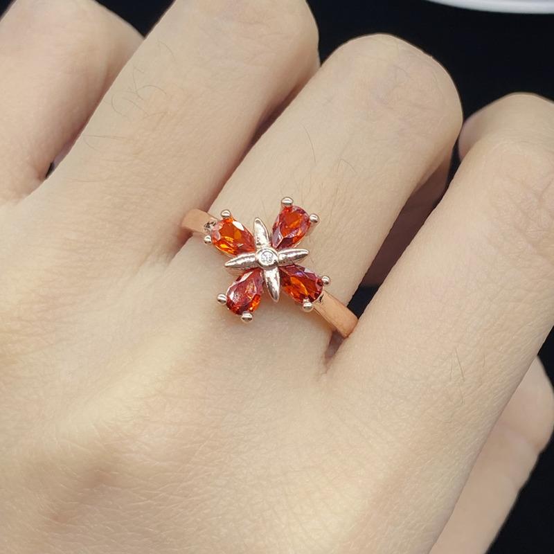 BELLA BOX Высококачественная циркониевая сетка, красная прямая трансляция, вспышка, цвет огня, новая имитация граната, четырехлистный клевер, открытое кольцо для девочек