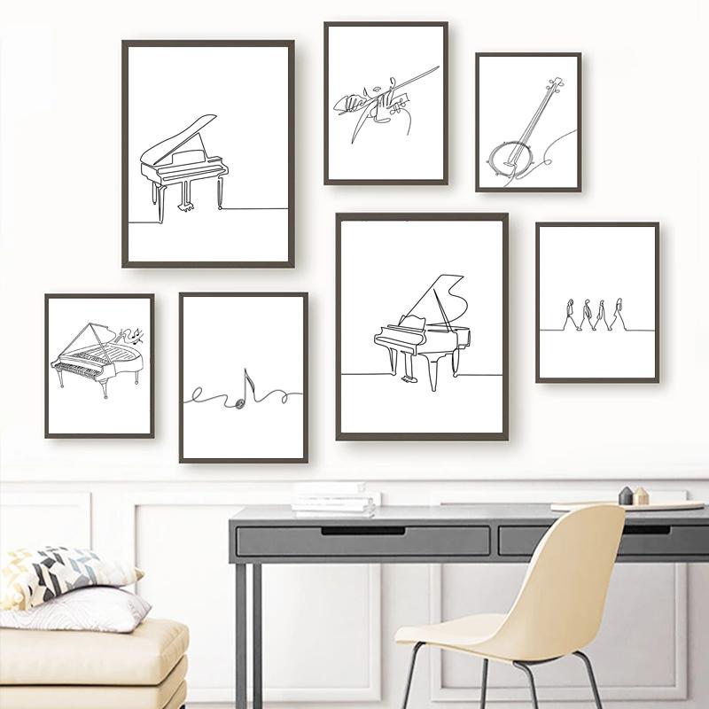 Современный минималистичный музыкальный инструмент, фортепиано, гитара, барабанная установка, музыкальный плакат, скандинавский настенный художественный постер для гостиной, спальни, домашний декор — купить товар онлайн с бесплатной доставкой по всему миру!