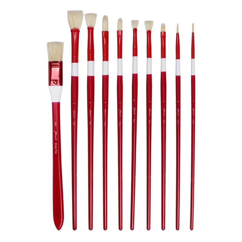 JOWOART 10 шт. многофункциональная красная длинная березовая кисть из свиной щетины веерообразная акриловая масляная кисть для гуаши набор художественных принадлежностей