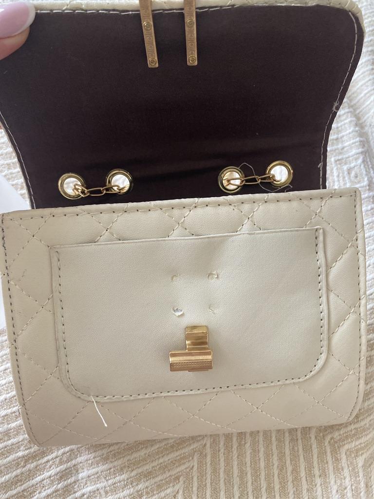 Заказывали бежевую. Цвет точно такой же как на фото. Прошито всё аккуратно. Есть запах винила, надеюсь, что выветрится потом. Сумочка жесткая, зимой вообще замерзнет, лучше носить летом я так думаю. Внутри кармашек, но туда даже паспорт не помещается, только для проездного или ключей. Для своей цены - качество просто супер))) До Мск дошло за 23 дня. Спасибо продавцу!