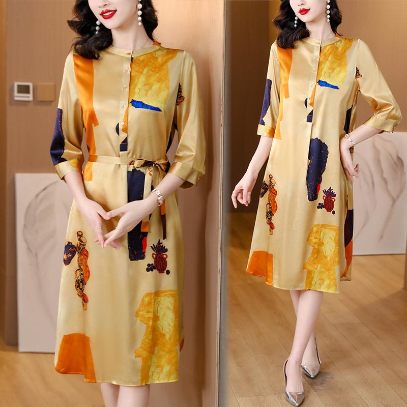 Элегантное и удобное платье с цветочным принтом и круглым вырезом больших размеров