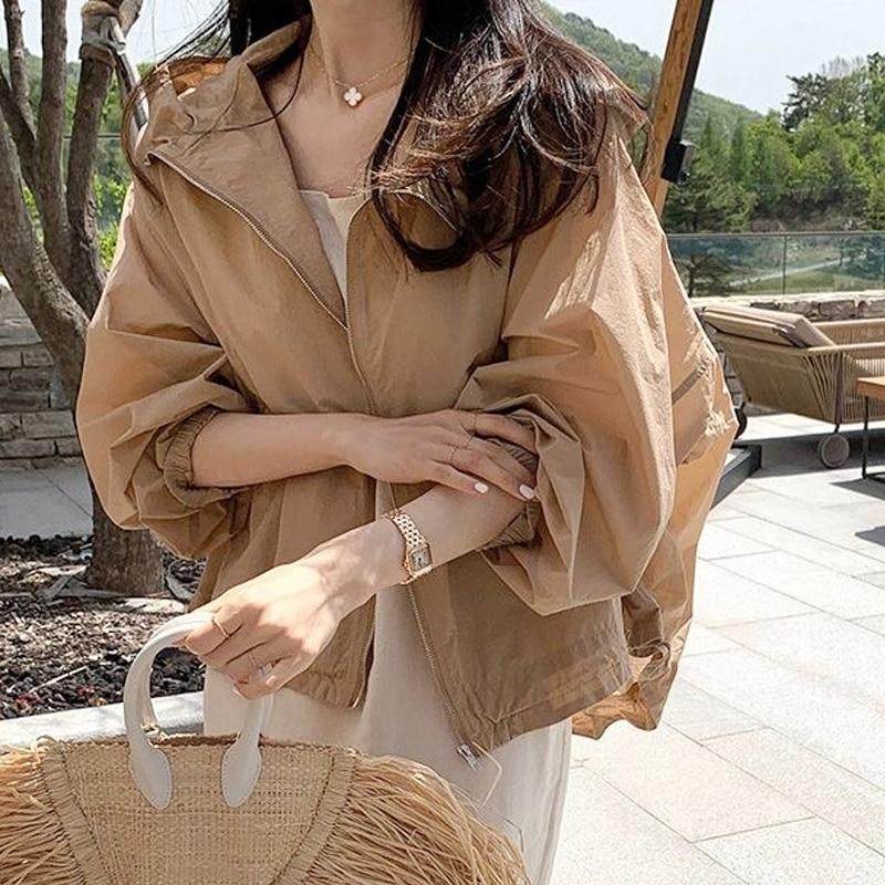 Летняя солнцезащитная укороченная куртка с капюшоном, женская 2023, повседневное пальто на молнии, легкая тонкая рубашка с длинными рукавами, женская свободная одежда 27234 — купить товар онлайн с бесплатной доставкой по всему миру!