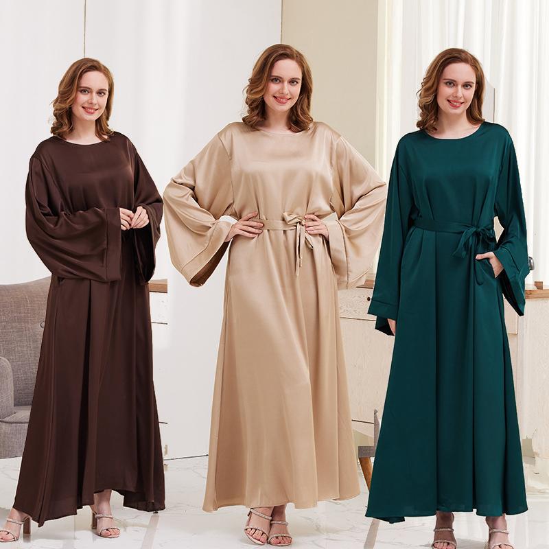 Рамадан Атласная Абая Дубай Кафтан Мусульманское женское платье макси Джилбаб Вечернее платье Халат