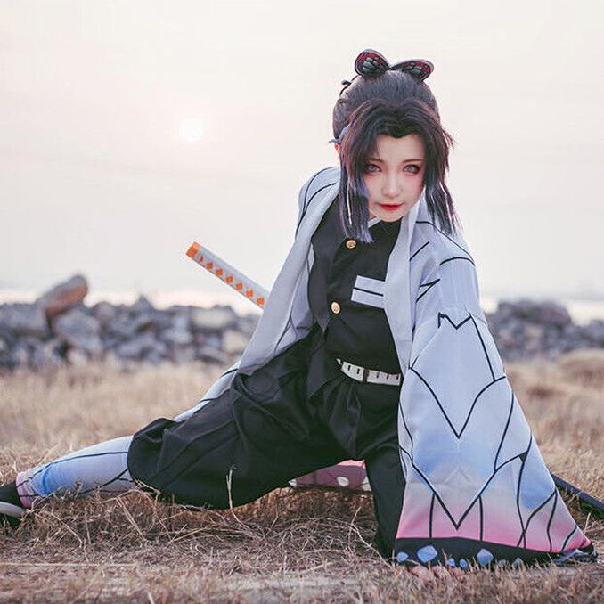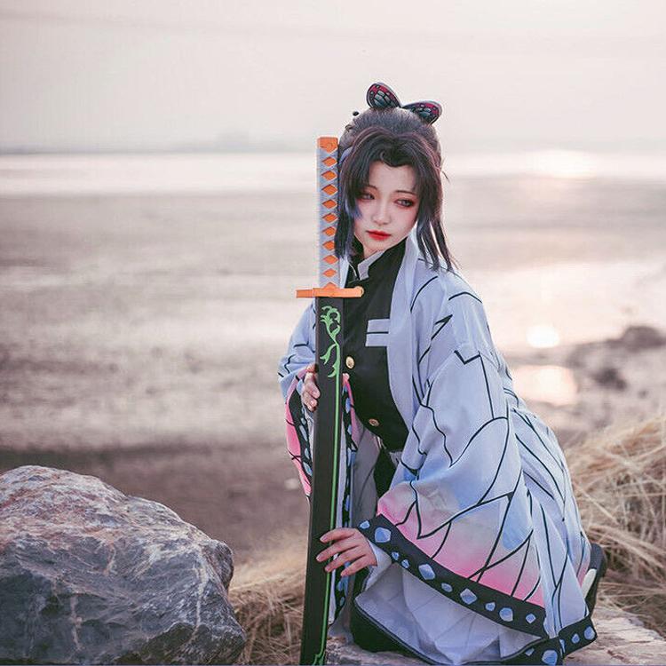 Аниме Demon Slayer Shinobu Косплей Костюм Женское кимоно Хэллоуин Карнавальный костюм для вечеринки