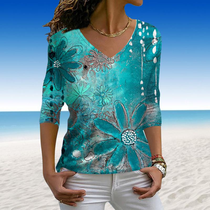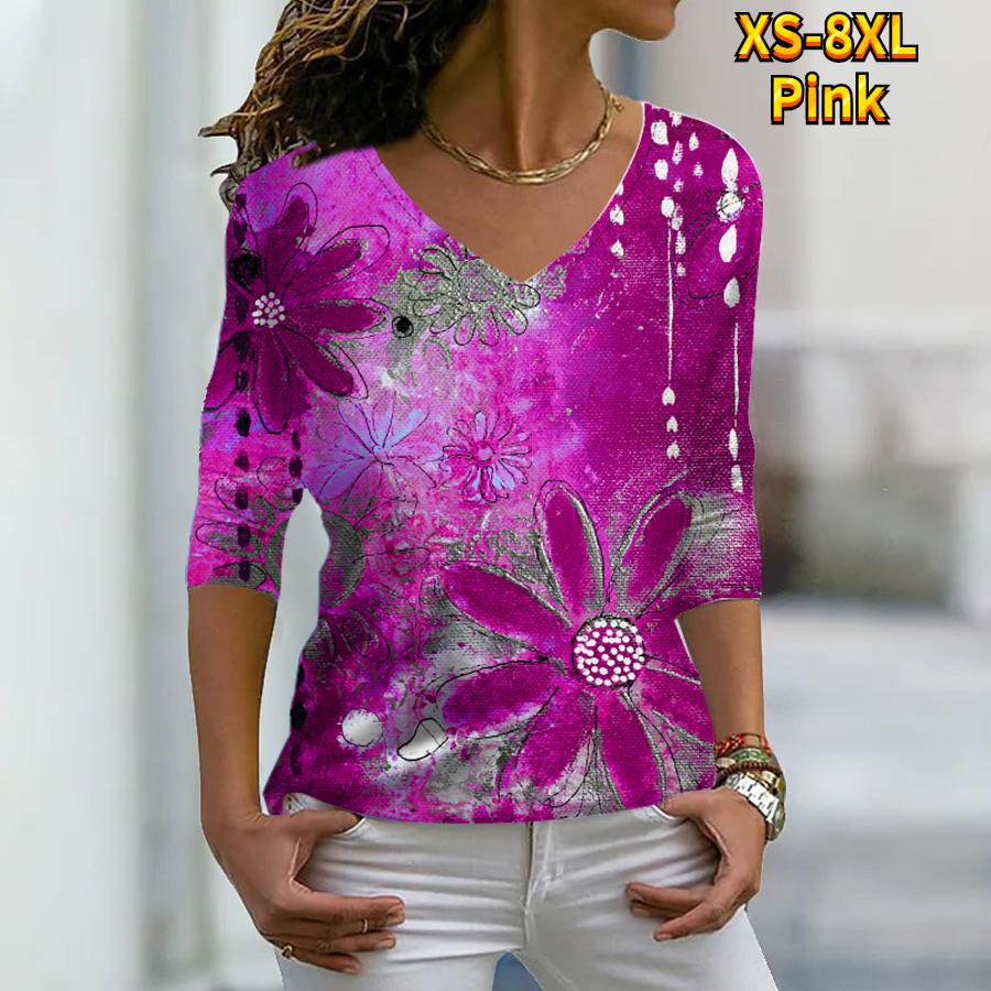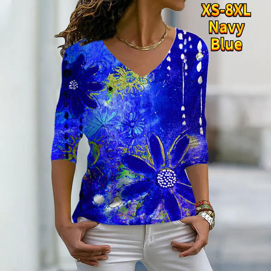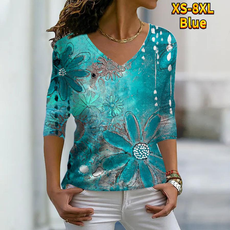 Женские осенние футболки с длинным рукавом и цветочным принтом подсолнухов, свободные футболки с v-образным вырезом размера плюс, удобная блузка