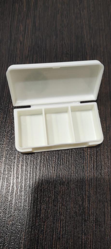 Компактная таблеточница, не пахнет ничем пластик. Хорошо открывается и закрывается. Три отделения мне как раз достаточно. Лежит себе в сумочке, много места не занимает. И, достанешь где-то в присутствии, выглядит аккуратно. Рекомендую 👍