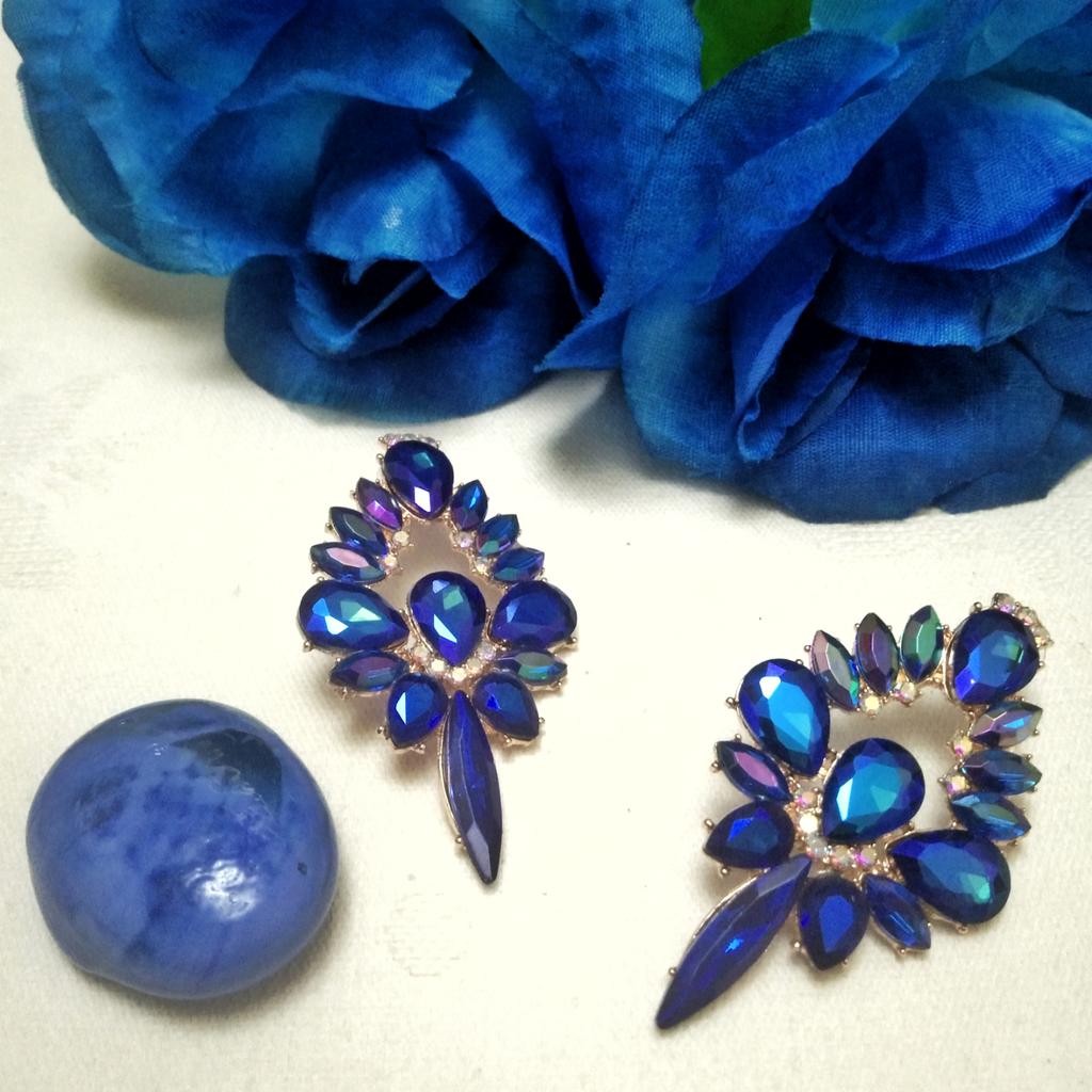 💎 Шикарные вечерние серьги Я фанат сочетания синего и зелёного и конечно же заказала такие серьги. К сожалению оказалось правда, что нет там никакого премиум-качества, как в названии, одна серьга с косяком... Вес: по 15 грамм штука (увесистые) Размер: 67*37 мм Металл: сплав цинка скорее всего, золотистого цвета. Итак про косяк: его хорошо видно на фото, на одной из серег нижний страз сдвинут в сторону. С помощью ножа удалось отделить камешек от основы. Остался прозрачный клей. Сразу скажу, что нагревать его феном бесполезно, он никак не реагирует. Я взяла свою машинку для маникюра, и с помощью алмазной фрезы выдолбила клей внутри основы. Потом взяла прозрачный клей "Момент кристалл" и поставила камень на место, теперь всё ровненько. Конечно не приятно косяк получать, за это снижаю балл, но зато серьги очень красивые, поэтому только минус звезда. Серьги смотрятся эффектно, безупречный выбор на вечер. Можно как моно-серьгу надевать, тоже будет интересно. Серьги увесистые, ушко оттягивают своим весом, но на вечер это выдержать можно. Расцветки есть разные, но моя расцветка "зеленая" мне кажется что самая красивая, так что буду советовать заказывать её!