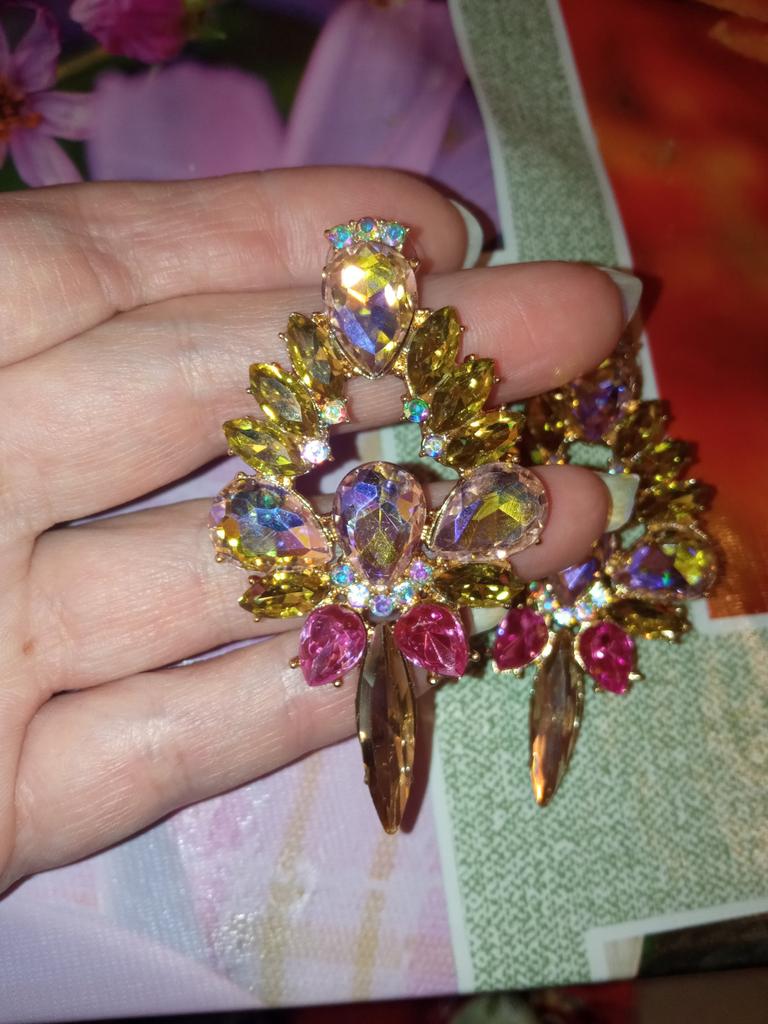 Серьги очень красивые, большие, но тяжёлые, даже я ощущаю их вес, хотя привыкла носить крупные серьги, не на каждый день точно, а так расцветка очень красивая, розово-золотая, переливается на свету, без повреждений, продавцу спасибо🤗, закажу и в других цветах, к покупке рекомендую🥰, но тяжёлые