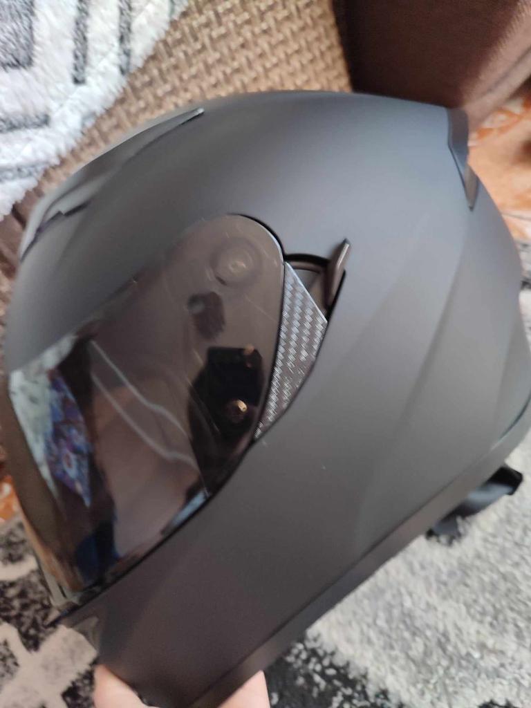 Шлем просто бомба, сел на голову как влитой. Забрало и очки целые, слегка поцарапан слева, но не трагично. Легкий как пушинка. У нас в Архангельской области такие стоят более 3000 р. Рекомендую к покупке. КЛАСС !!!
