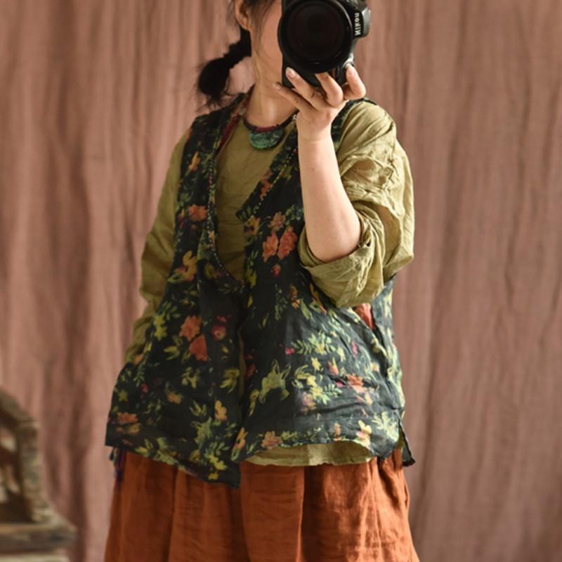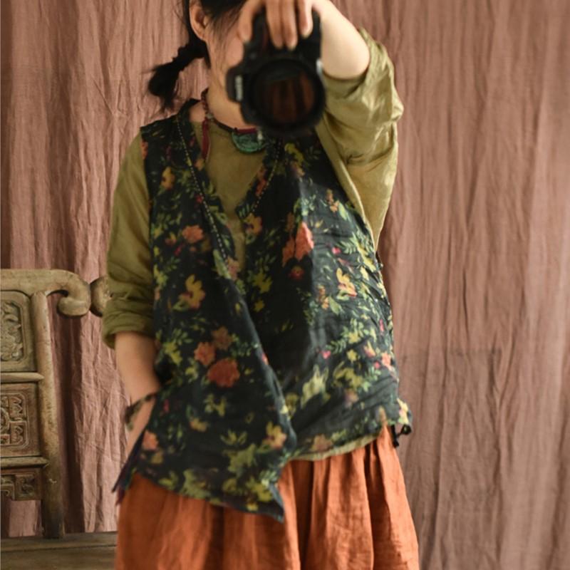 Johnature Женские винтажные жилеты с цветочным принтом, летние пальто, женские жилеты в китайском стиле Ramie высокого качества